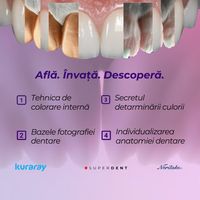 Luna Martie te așteaptă cu un curs dedicat tehnicienilor dentari, unde vei aprofunda tehnica de coloranți interni, determinarea culorii, fotografia dentară și individualizarea anatomiei.