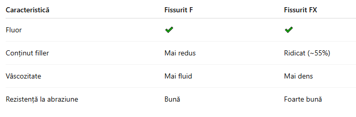Fissurit FX este un sigilant fotopolimerizabil pentru fisuri, inclusiv fisuri largi și fosete dentare cu conținut ridicat de fluor și materiale de umplere. Este utilizat pentru a sigila șanțurile și fisurile din dinți pentru a preveni caria și pentru a proteja smalțul dentar după igienizare. Produsul este alb, ceea ce permite un control vizual ușor în timpul aplicării și aderă bine pe suprafața smalțului.